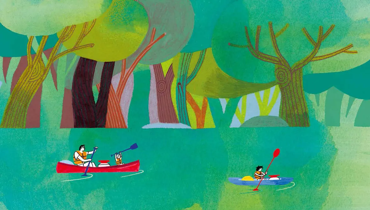 Illustration de Alice Ourghanlian in Un long week-end en canoë / Ed. Hélium 2025